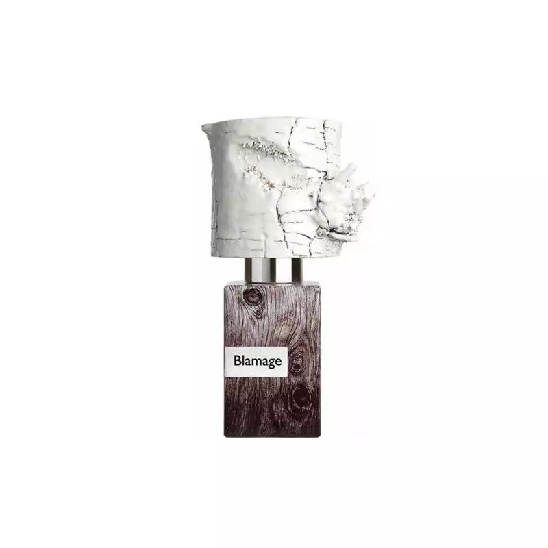 EXTRAIT DE PARFUM. Blamage di Nasomatto è una fragranza originale dalle mille e appena percettibili sfaccettature, con un mix sapientemente dosato di note legnose/cuoiate e muschio, il risultato è caldo ma non troppo, sensuale, intimo e veramente ben articolato.