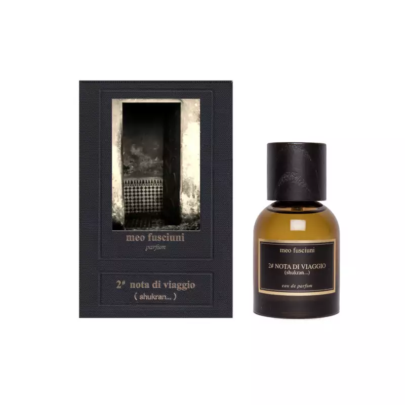 EAU DE PARFUM. 2# nota di viaggio (shukran) di Meo Fusciuni è una fragranza aromatica, allegra e solare, un ringraziamento all'ospitalità delle popolazioni berbere incontrate durante i vari viaggi in Marocco.