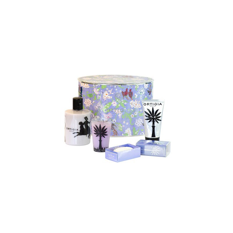 Il regalo ideale:Gelsomino di Sicilia di Ortigia in scatole argentate colorate; lo stile italiano incontra la storia e la magia della Sicilia. Bagno schiuma 200ml, Candela cono, Sapone singolo 40g, Crema mani 75ml