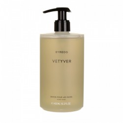 SAPONE LIQUIDO. VETYVER savon pour les mains è un detergente che BYREDO crea e inserisce in una nuova linea per la cura delle mani composta da tre diverse referenze: sapone liquido, lozione mani e crema mani