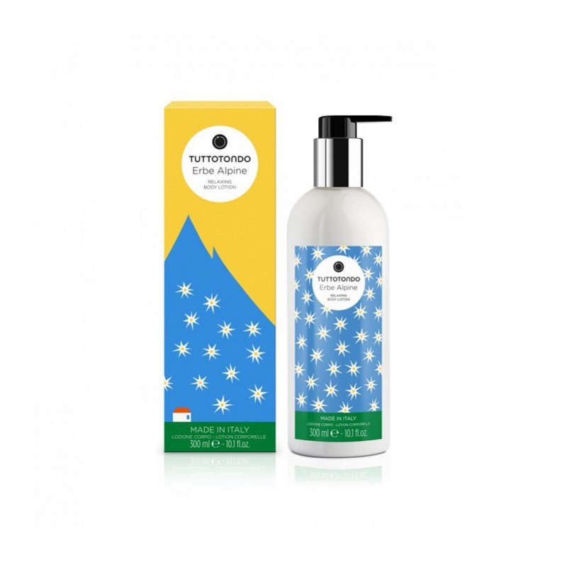 LATTE IDRATANTE. Erbe Alpine di Tuttotondo è una fragranza fiorita, aromatica e legnosa. Bergamotto, arancia, limone e coriandolo si uniscono ad un cuore di gelsomino, iris, balsamo di abete, eucalipto, violetta e rosa. Un fondo luminoso e vibrante di legno di cedro e muschio dona corpo e persistenza alla composizione.
