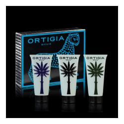 Il regalo ideale: Fico D'India di Ortigia in scatole argentate colorate; lo stile italiano incontra la storia e magia della Sicilia. Un bagnoschiuma da 75 ml, uno shampoo da 75 ml, una crema corpo da 75 ml