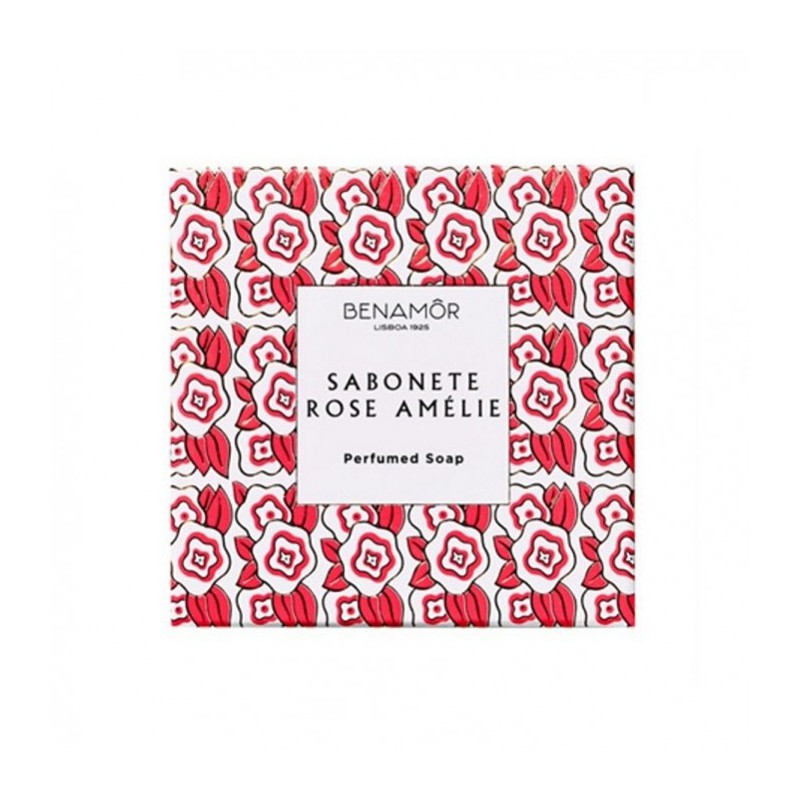 SAPONE PROFUMATO. Rose Amelie Sabonete di Benamor è un sapone profumato alla rosa che deterge delicatamente la pelle. Lenitivo e nutriente non disidrata l'epidermide.
