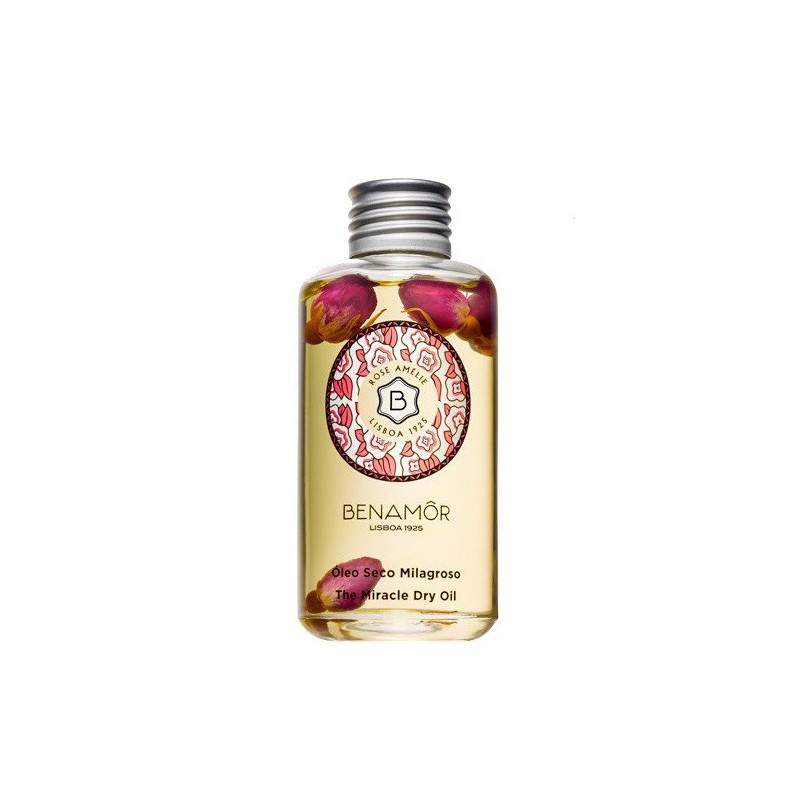OLIO SECCO. Rose Amelie Oleo Seco Milagroso di Benamor è un olio che nutre, protegge e dona luminosità. Dal rapido assorbimento, è adatto per viso, corpo e capelli.