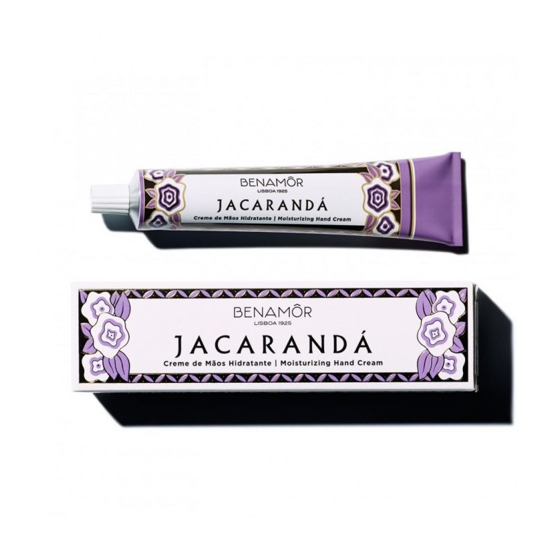 CREMA PER LE MANI. Jacarandà creme de maos Hidratante di Benamor è una crema protettiva per le mani delicatamente profumata ai fiori che lascia la pelle morbida e luminosa grazie all'olio di argan e al burro di karitè.
