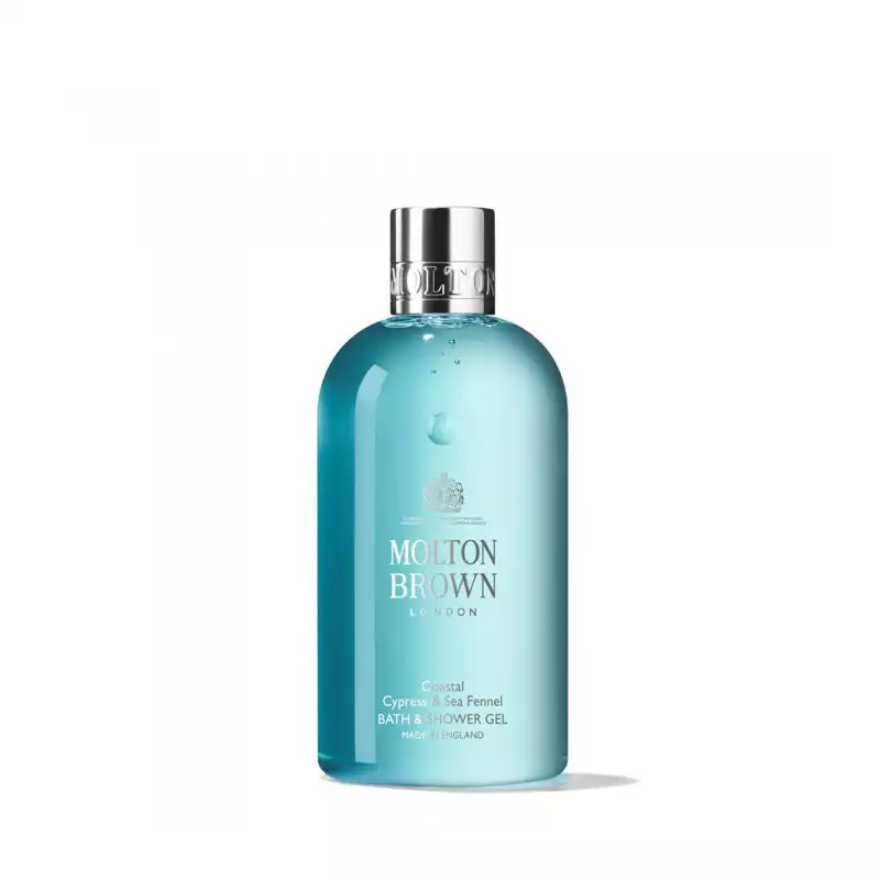 BAGNOSCHIUMA. Coastal Cypress & Sea Fennel shower gel di Molton Brown a base di olio essenziale di cipresso marino, è un doccia schiuma che lascia sull'epidermide un bell'aroma di note marine.
