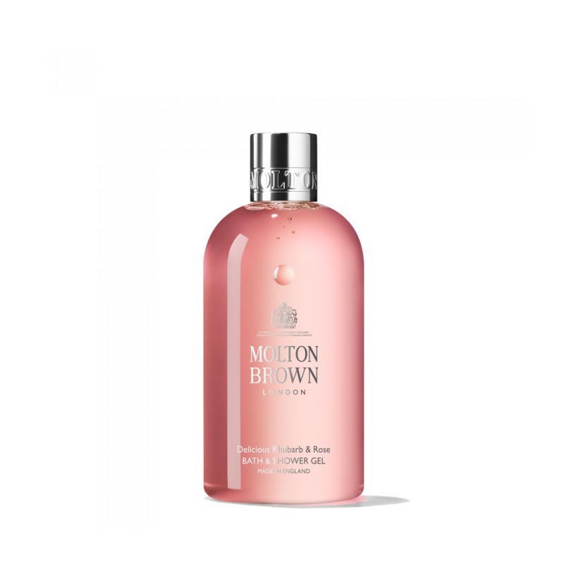 BAGNOSCHIUMA. Rhubarb & rose shower gel di Molton Brown è un docciaschiuma lussuoso dal sentore fruttato e gourmand, grazie al rabarbaro e alla rosa.