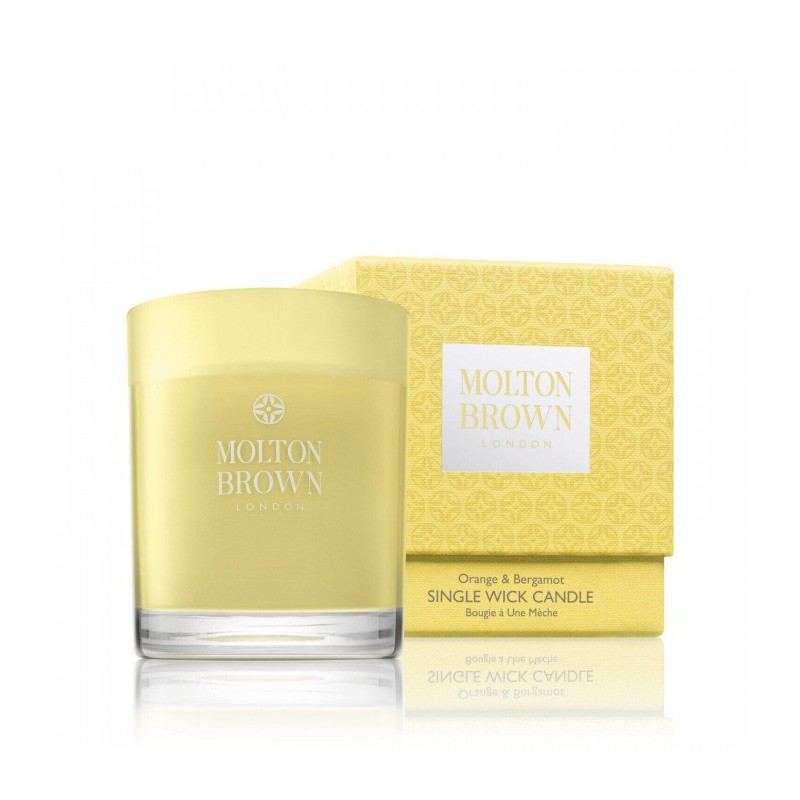 CANDELA 1 STOPPINO. Orange & Bergamot candle di Molton Brown diffonde nell'ambiente le gradevoli note profumate degli agrumi.