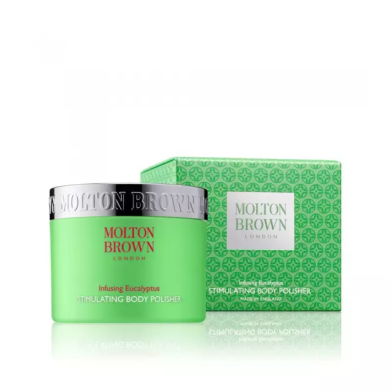 ESFOLIANTE CORPO. Eucalyptus body polisher di Molton Brown rimuove cellule morte e impurità grazie alle particelle di zucchero, dona luminosità all'epidermide e la rende più morbida e recettiva.