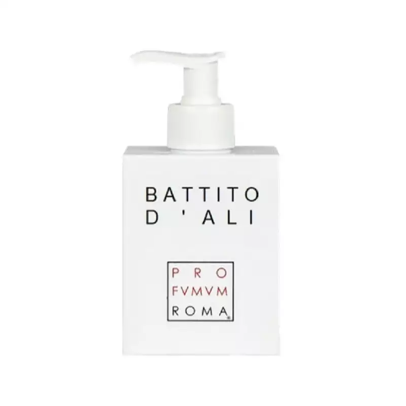 LATTE IDRATANTE. Battito d'Ali di Profumum Roma è una crema per il corpo che rende la pelle morbida e vellutata, nutre in profondità grazie al burro di karitè, acido ialuronico, edera e vitamina E.