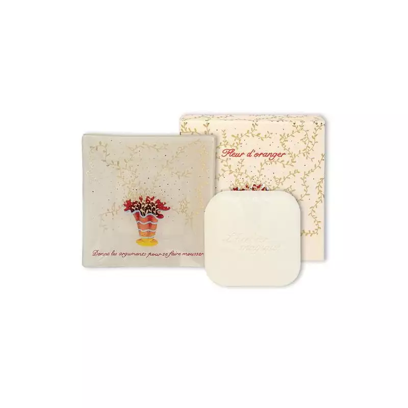 SAPONE PROFUMATO + PORTA SAPONE. Fleur d'oranger è una saponetta fatta artigianalmente in una versione molto originale