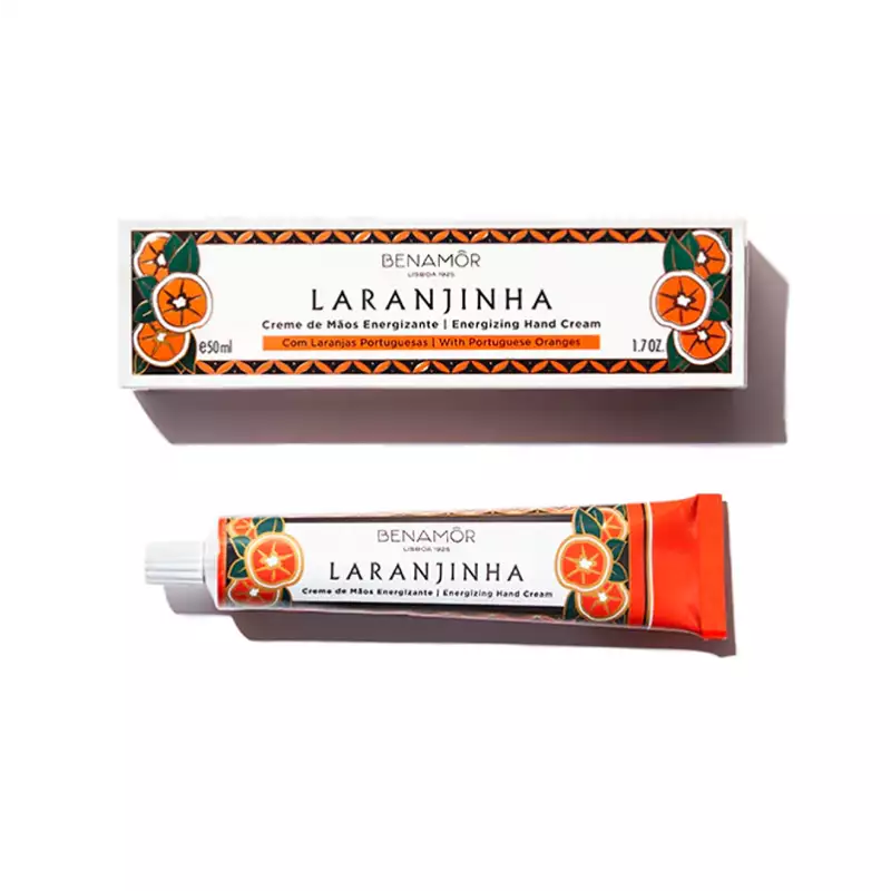 CREMA PER LE MANI. Laranjinha creme de maos protector di Benamor è una crema protettiva per le mani delicatamente profumata all'arancia amara che lascia la pelle morbida e luminosa grazie all'allantoina e alla glicerina.