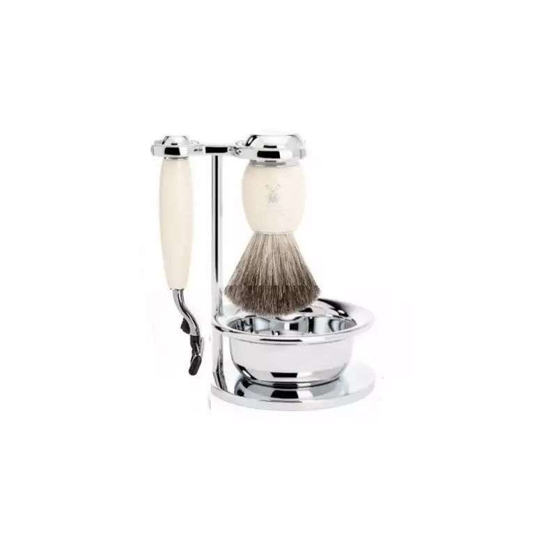 pennello in tasso pure badger e rasoio mach3 colore avorio