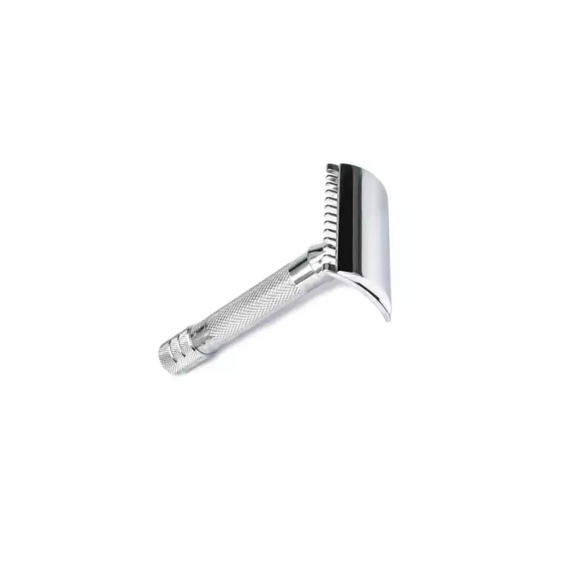 Rasoio a lametta in ottone nichelato prodotto in Germania dalla ditta Merkur, questo rasoio viene prodotto da più di sessant'anni.