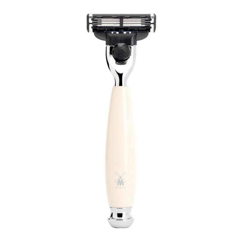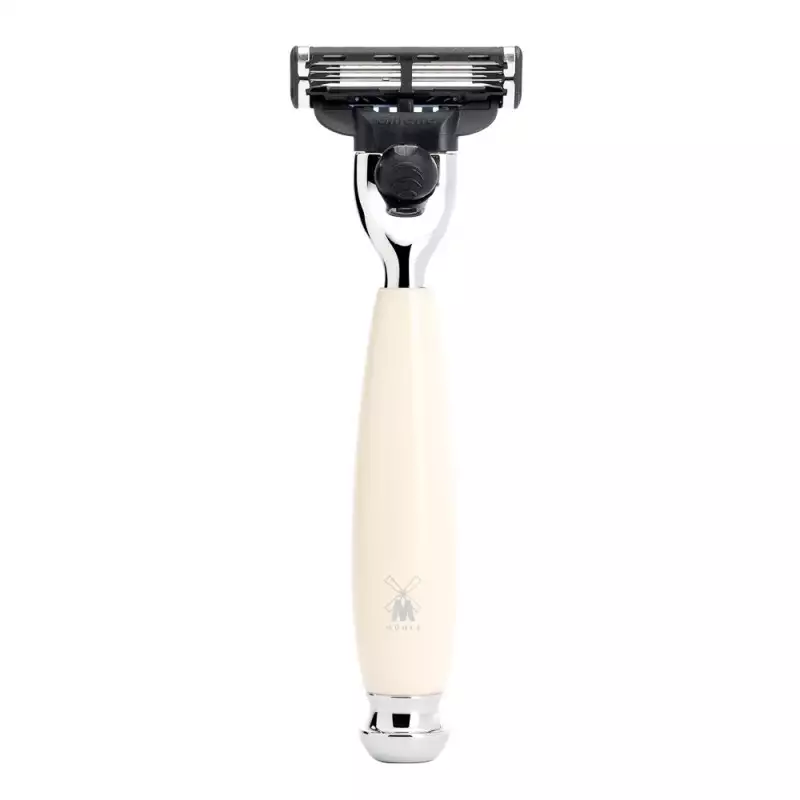 Rasoio con testina Mach3 e manicatura resina color avorio