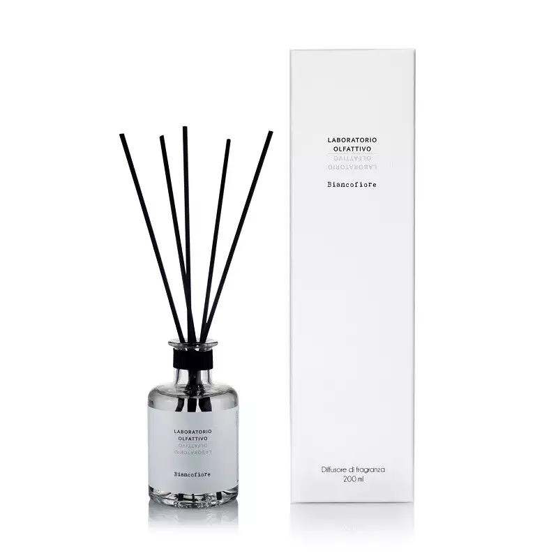 DIFFUSORE AMBIENTE. Biancofiore di Laboratorio Olfattivo è un diffusore per ambiente perfetto per profumare ogni tipo di ambiente, dal designi semplice e raffinato e dalla fragranza fiorita e pulita