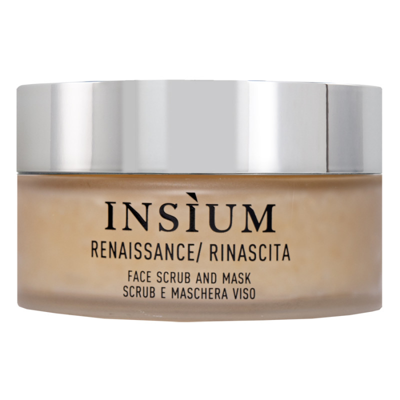 SCRUB E MASCHERA VISO. Rinascita di Insìum è una maschera in gel, morbida e confortevole che stimola il ricambio cellulare grazie all’azione esfoliante combinata con le vitamine C e E antiossidanti e anti age. Le qualità nutrienti e idratanti degli olii di Argan e avocado aumentano l’elasticità della pelle combattendo gli effetti del tempo, mentre la polvere di riso lenisce gli arrossamenti.