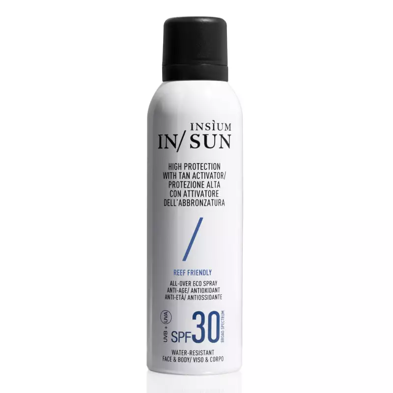 SOLARE ALTA PROTEZIONE SPF 30. Protezione alta spf 30 con attivatore di abbronzatura spray di Insìum è una crema solare protettiva per viso , occhi e corpo.