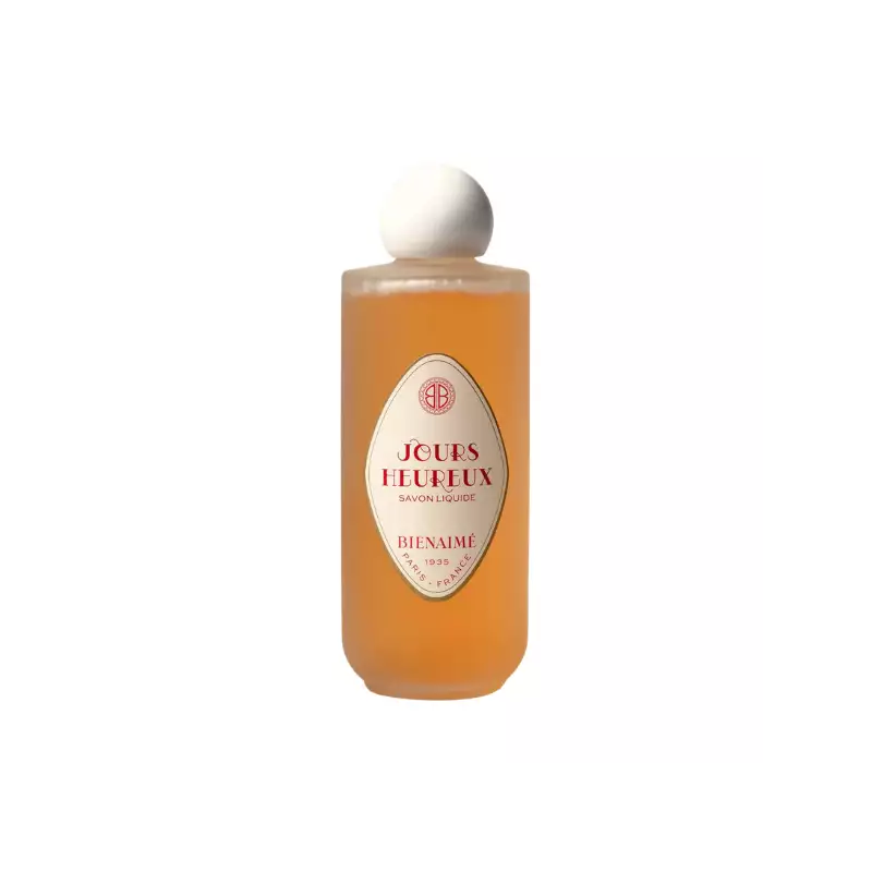 SAPONE LIQUIDO. Jours Heureux Le savon Liquide di Bienaimè è un detergente perfetto per tutti i tipi di pelle, anche le più delicate, dalla pulita profumazione di mandorla, fava tonka, violetta e muschio bianco
