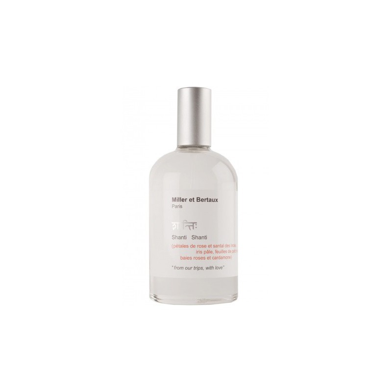 EAU DE PARFUM. Shanti Shanti di Miller et Bertaux è la fragranza che meglio rappresenta il pianeta "India", con i suoi colori, i suoi aromi e la sua allegria: è l'India della festa di Holi, con i 1000 petali di rosa lanciati per aria, è l'India della fede, con il legno di sandalo con cui ci si segna la fronte durante le funzioni religiose, è l'India delle spezie con le quali ci delizia il palato.